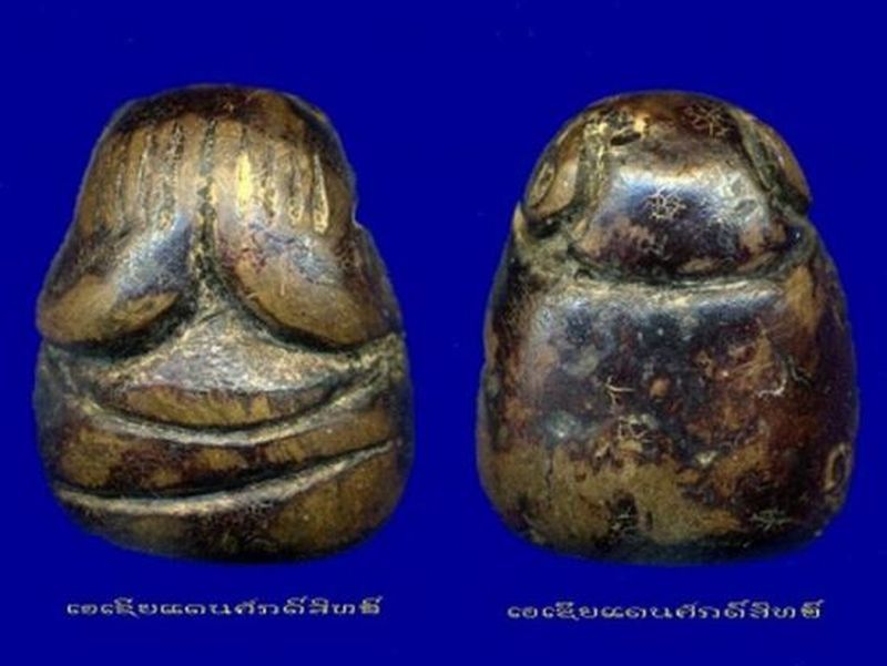 พระปิดตาหลวงพ่อแก้วพิมพ์ปั้นไม่มีหูฝังตะกรุดทองคำ