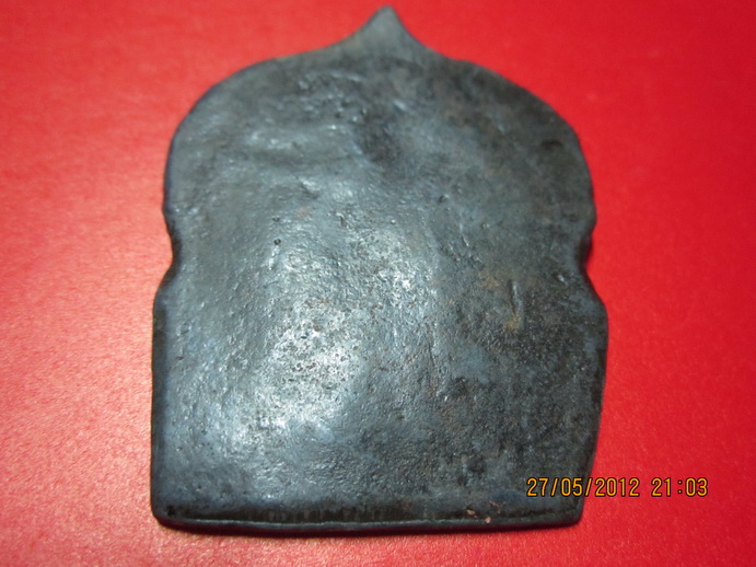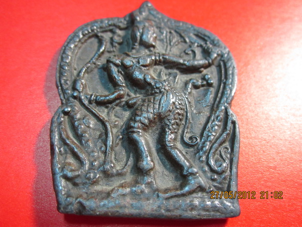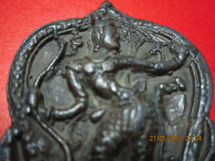 เทวรูปเป็นเนื้อชินตะกั่วสนิมแดง เพราะเป็นชินตะกั่วผสมจึงทำให้สนิมขึ้นน้อย