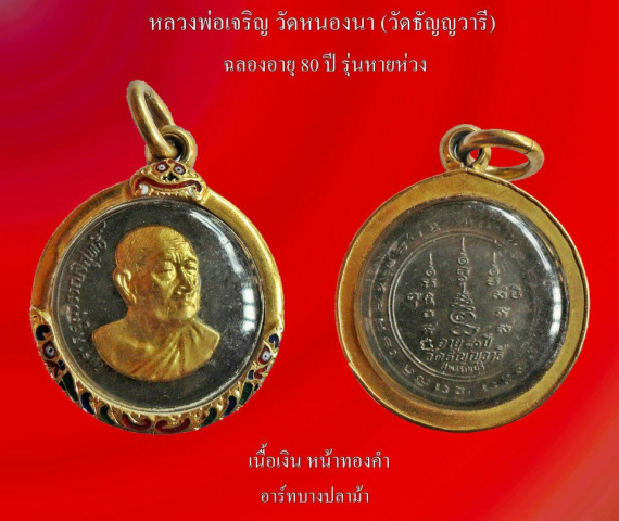 เหรียญฉลอง 80 ปี (รุ่นหายห่วง) หลวงพ่อเจริญวัด ธัญญวารี (หนองนา) สุพรรณบุรี เนื้อเงินหน้าทองคำแท้ (โชว์ครับ)