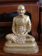 พระบูชารูปเหมือนหลวงปู่ดู่ วัดสะแกปี2525เนื้อผงพุทธคุณผสมปูนทาทองบรอนซ์(ขายแล้ว)