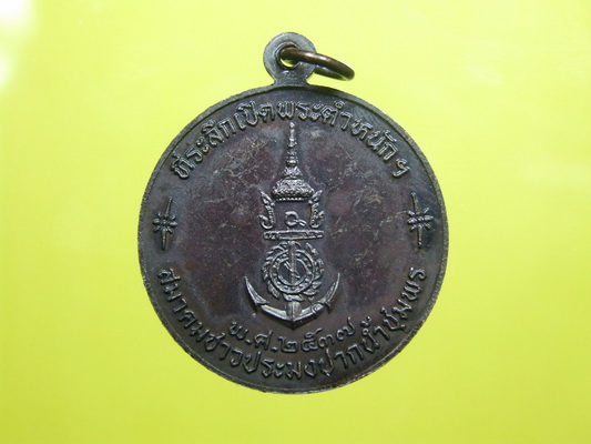เหรียญพลเรือเอก พระเจ้าบรมวงศ์เธอกรมหลวงชุมพรเขตรอุดมศักดิ์ เหรียญที่ระลึกเปิดพระตำหนักฯ พ.ศ.๒๕๓๗ สมาคมประมงปากน้ำชุมพรจัดสร้าง