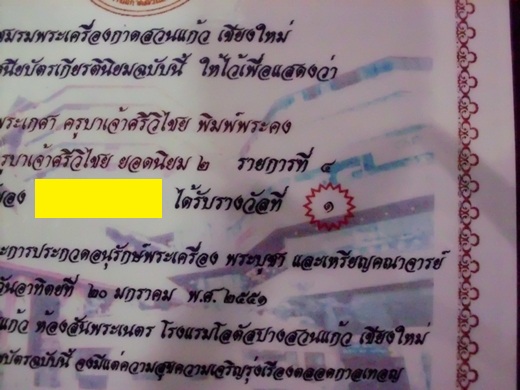 ผู้ใหญ่แถวบ้านเมตตาจึงให้มาครับ มาพร้อมใบประกวดจากงานเชียงใหม่ครับ องค์แชมป์