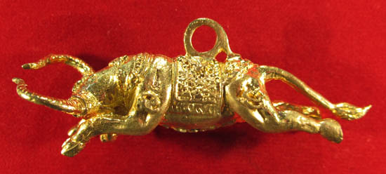 ควายธนู หลวงพี่ต่อ จ.นครนายก เนื้อทองเหลือสวยมากครับเดิม ๆประวัติ ครับกลายเป็นเรื่องราวตื่นเต้นจนโด่งดังเกรียวกราว เมื่อมีข่าวแพร่สะพัดลือสั่นไปไกลว่า หลวงพี่ต่อ หรือมีชื่อเต็มๆว่า พระอาจารย์กฤษฏาพร กนฺตวีโร เจ้าอาวาสวัดมณีวงศ์ ต.ดงละคร อ.เมือง จ.นครนายก พระอาจารย์หนุ่มยุคใหม่ เสกควายธนูจนมีชีวิตวิ่งกันคึ่กคึ่กซะฝุ่นตลบ! นี่ไม่ใช่เรื่องจริงผ่านจอ แต่เป็นเรื่องจริงผ่านหน้ากระดาษที่จะสาธยายให้ฟังจากเรื่องราวที่ถ่ายทอดจากปากผู้เจอประสบการณ์จริงควายธนูของหลวงพี่ต่อ สร้างออกมาไม่เหมือนใคร มีลักษณะอ้วนพุ้ย บึกบึน แข็งแรง และใช้วิชากำกับด้วยมนต์คาถาตามตำราวิชาโบราณอันเก่าแก่หลายร้อยปีที่สืบทอดมาจากบรรพบุรุษสมัยอยุธยา โดยมีคุณยายตุ้ย ยายแท้ๆของท่าน เป็นผู้ถ่ายทอดวิชาอาคมและฝึกฝนให้ท่านร่ำเรียนวิชานี้มาตั้งแต่ยังเยาว์วัย คุณยายตุ้ยของหลวงพี่ต่อเชี่ยวชาญไสยศาสตร์วิชาอาคมหลายแขนง และเป็นผู้บำเพ็ญเพียรรักษาศีลมิให้ขาด มีเมตตา ชอบช่วยเหลือผู้คนจนหลวงพี่ต่อชินตา เวลาที่เห็นคนทุกข์ร้อนมาหาคุณยาย เพื่อขอให้ช่วยอย่างนั้นอย่างนี้ สมัยเด็กมีอยู่คนหนึ่งมาร้องห่มร้องไห้เล่าให้คุณยายฟังว่า ขโมยขึ้นบ้าน กวาดเอาข้าวของเงินทองไปหมด แม้แต่วัวควายที่มีอยู่เพียงสองตัวโจรร้ายมันก็กวาดต้อนเอาไปด้วย หมดสิ้นแล้วทุกอย่าง คุณยายตุ้ยได้ฟังเท่านั้น แกก็บอกให้ชาวบ้านคนนั้นไปรออยู่ที่บ้านไม่ต้องห่วงไม่ต้องเศร้าอีกต่อไปแล้ว ประเดี๋ยวคืนนี้แกจะให้ควายธนูไปตามทุกอย่างมาคืนให้ คนผู้นั้นได้ฟังก็ดีใจมาก ไม่ร้องไห้คร่ำครวญอีกแล้ว รีบจ้ำอ้าวกลับบ้านทันที คืนนั้นคุณยายนำดินเหนียวมาก้อนหนึ่ง แล้วปั้นเป็นรูปร่างคล้ายควายตัวน้อยๆ คุณยายบอกว่า นี่คือ ควายธนู คุณยายนั่งบริกรรมพระคาถาทำปากขมุบขมิบอยู่เพียงลำพังภายในห้องพระ ก่อนที่คุณยายจะนั่งนิ่งหลับตาภาวนาเพื่อทำสมาธิ แกได้บอกให้เด็กชายต่อออกไปรออยู่หน้าห้อง และสั่งกำชับห้ามให้ใครเข้าไปรบกวนเด็ดขาด ในความเงียบสงัดนั่นเอง ! ครู่ต่อมาเด็กชายก็ได้ยินเสียงบางสิ่งบางอย่างดังขลุกขลักวิ่งคึ่ก คึ่กอยู่ภายในห้องคุณยาย แล้วเสียงนั้นก็เงียบหายไปเนิ่นนานจนเวลาผ่านไปเกือบสามทุมเสียงคึ่ก คึ่ก ก็ดังขึ้นอีกและจึงเงียบหายไป รุ่งเช้า เด็กชายต่อก็เห็นชาวบ้านคนเดิมเดินยิ้มแป้นเข้าไปหาคุณยายพร้อมนำหมากพลูผลไม้ต่างๆมามอบให้คุณยายมากมาย และบอกว่า วัวควายที่หายไปได้คืนมาแล้ว พร้อมกับข้าวของเงินทองบางส่วนก็มีคนเอามาผูกไว้ที่รั้วหน้าบ้าน 