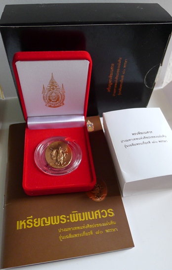 เหรียญพระพิฆเนศวรปางมหาเทพแห่งศิลปะของแผ่นดิน รุ่นเฉลิมพระเกียรติ ๘๐ พรรษา เนื้อบรอนซ์ ขนาด 2.5x3  ตอกหมายเลขใต้เหรียญ  47362