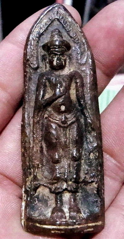 [ เช่าแล้ว] พระร่วงยืนหลังลายผ้า (สนิมแดง) ลพบุรี
